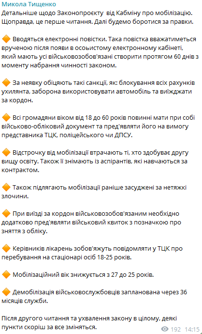 По словам Тищенко, после второго чтения и принятия закона в целом,некоторые пункты, скорее всего, изменятся.
